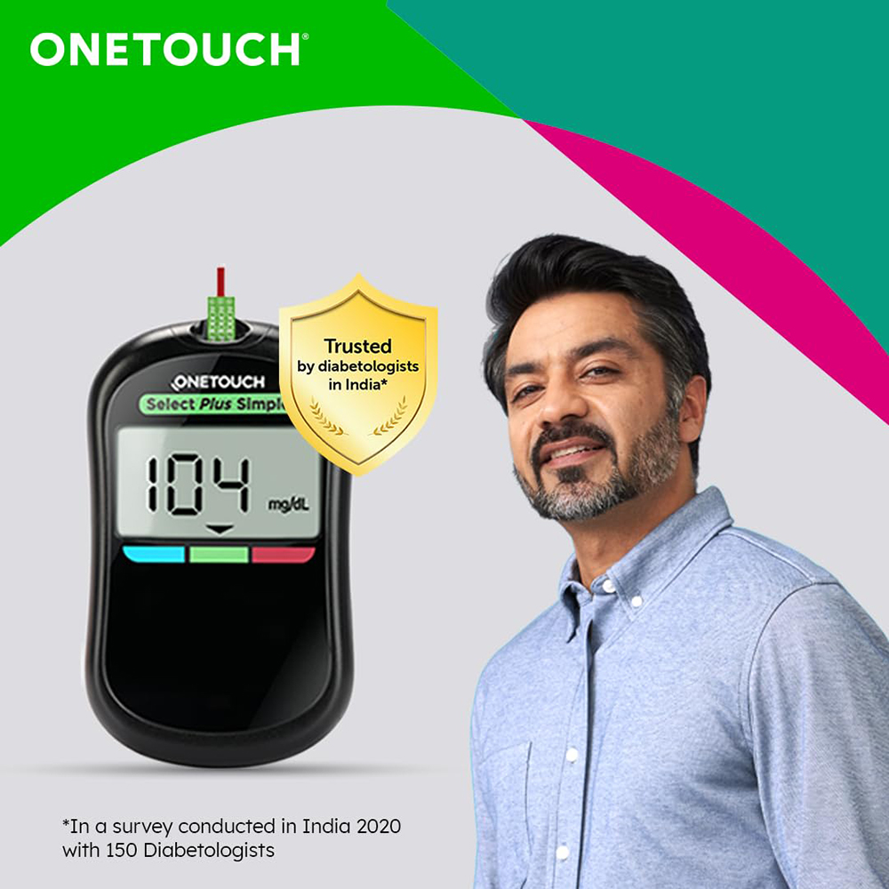 • No.1 recommended brand by Diabetologists: The OneTouch brand is the No.1 recommended brand of glucometer by diabetologists in India. *As per a survey conducted in India in 2023 with 150 Diabetologists.